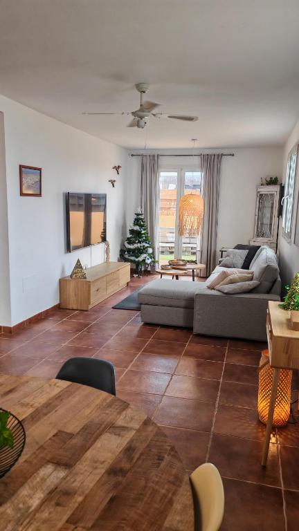 La proprietà, di circa 115 mq calpestabili distribuiti su due livelli, offre ambienti ampi e luminosi. Al primo piano si trovano tre camere da letto e due bagni; al piano terra, un bagno di servizio, un elegante e spazioso soggiorno e una cucina completamente attrezzata, dotata di lavastoviglie e di tutti gli elettrodomestici necessari.